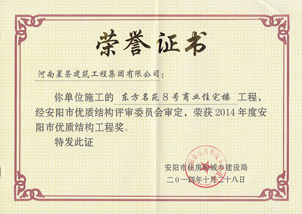 2014東方名苑8#樓優(yōu)質(zhì)結(jié)構(gòu)